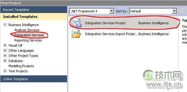 现在我们打开VS,创建一个Intergration Services Project。(注意:假如SQL Server 装的是Express版的话是没有这个项目工程模板的)