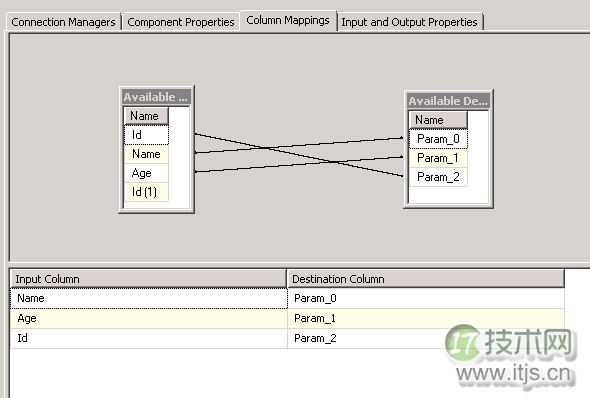 这里的参数值都是用?号来代替,之后在Column Mappings这个Tab中设置代替值实际代替的列,如下图: