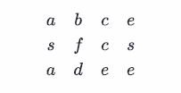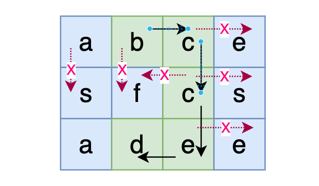输⼊:[[a,b,c,e],[s,f,c,s],[a,d,e,e]],"abcced"